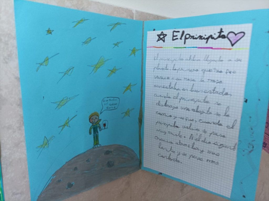 Las actividades han abarcado desde vídeos, lecturas reflexivas por capítulos, dibujos, canciones y análisis de los personajes; hasta la creación de medallas conmemorativas, marcapáginas, fichas de lectura y la incorporación de nuevos capítulos a la historia original. Destaca la visita de los alumnos de 4º de ESO, de la asignatura de francés, a cada una de las clases de Infantil y Primaria, ya que compartieron su entusiasmo por “El Principito” a través de actividades especialmente diseñadas para la ocasión.